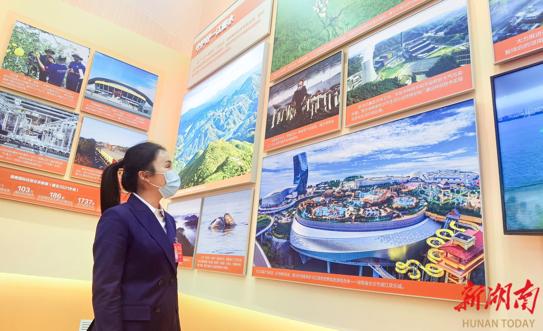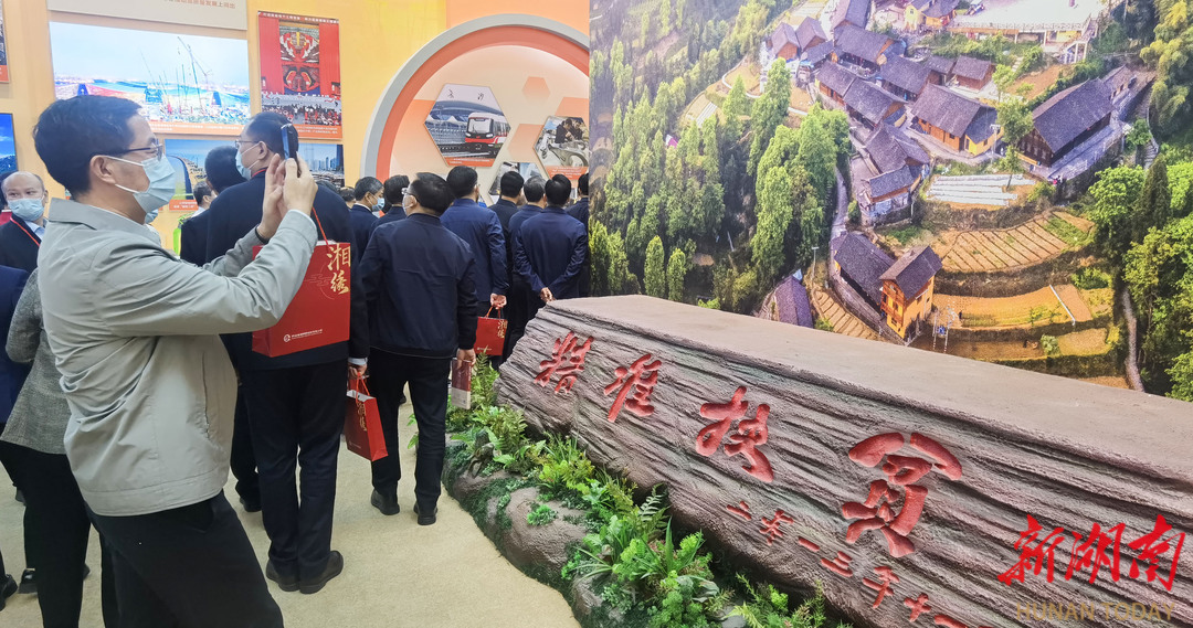 位于地方展區的湖南單元,是新時代10年湖南經濟社會發展輝煌成就的縮影,通過精準扶貧三湘路、立足“一帶一部”區域定位、塑造發展新優勢、守護好一江碧水、十步之內必有芳草5個單元,為觀眾講好湖南故事、展現湖湘魅力。
