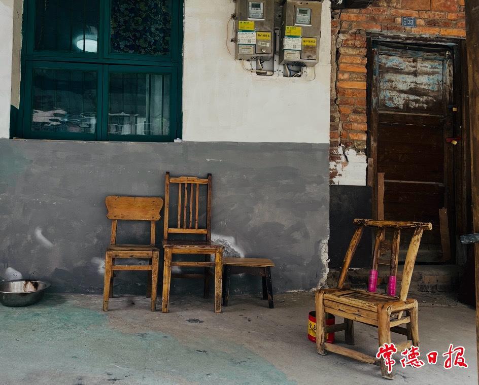 “啟明街道紅衛社區的一條巷子也特別出片?!蔽覀冺樦W友的指點,來到了賀八巷,裸露的紅磚墻瞬間吸引了我們的視線。一家住戶門前,綠色的玻璃窗有燈光透出,靠磚墻擺了兩件舊家具,四把老木椅隨時恭候著客人,我們立覺有歲月感撲面而來,仿佛這個場面,就是為了拍攝而特意設置的布景。