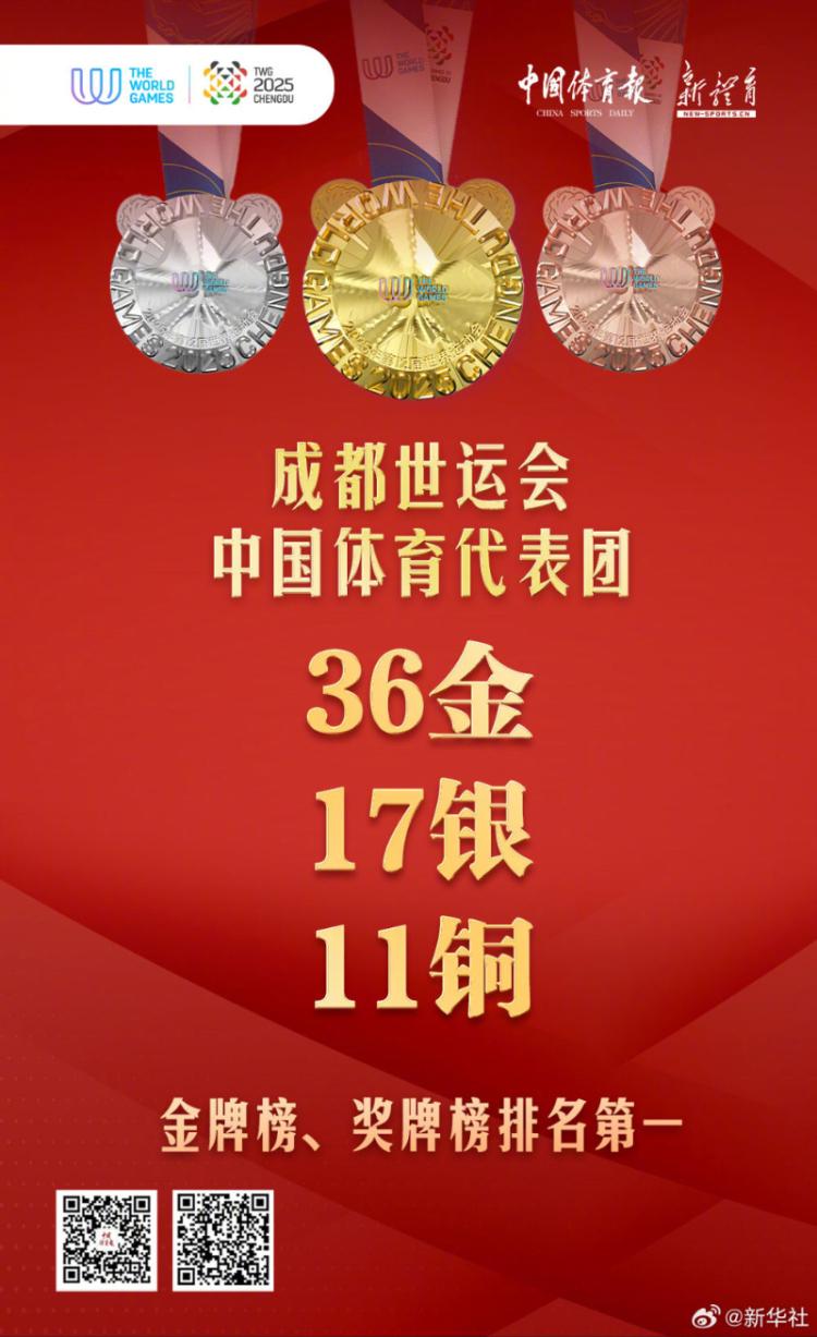 中國體育代表團位居金牌、獎牌榜首位!為運動員們點贊!