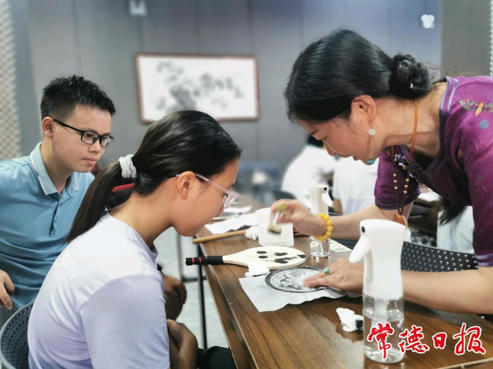 老師穿梭在學(xué)員間指導(dǎo),家長和孩子們饒有興致地開始了拓片,一幅幅精美的拓片作品陸續(xù)完成。經(jīng)老師和家長們現(xiàn)場評選,初中生黃馨潤的拓片作品被評為最優(yōu)。
