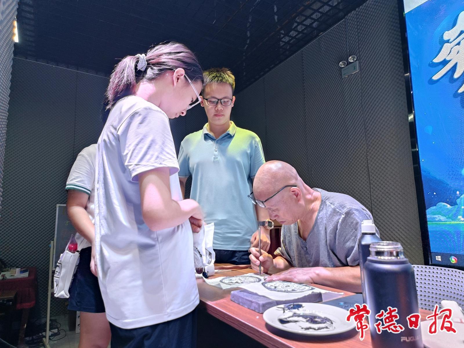 活動現(xiàn)場,2位老師示范了拓片的全過程,并手把手教大家覆紙、噴水、捶紙、拓墨。