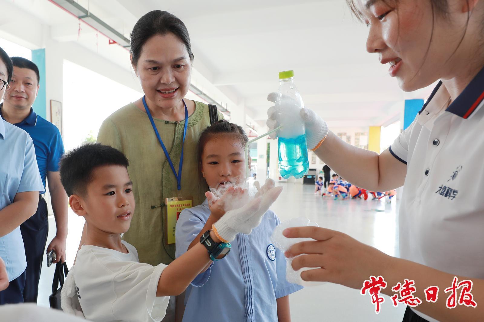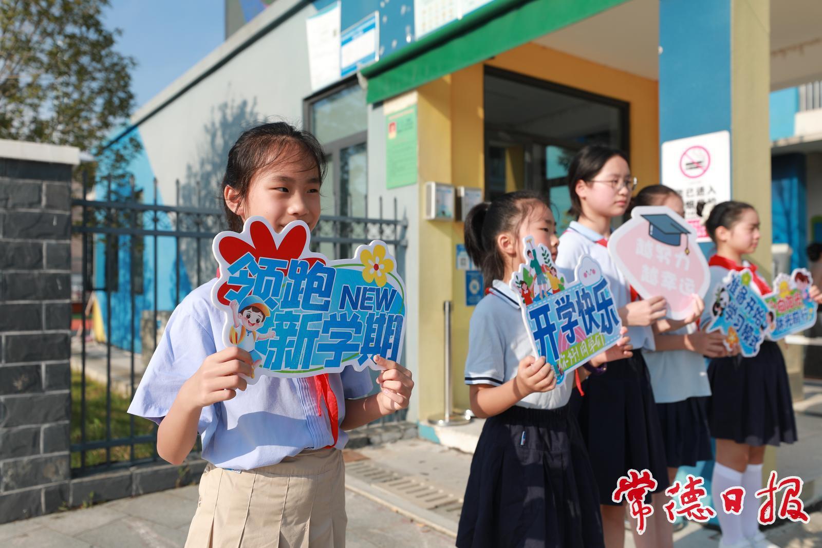 常德日報記者 裴維維 通訊員 李莉 文/圖 8月31日,常德市武陵區旭輝東升小學內彩旗招展、笑聲陣陣,該校以“銘記崢嶸八十載,接力奮斗新征程”為主題的秋季開學活動拉開帷幕。