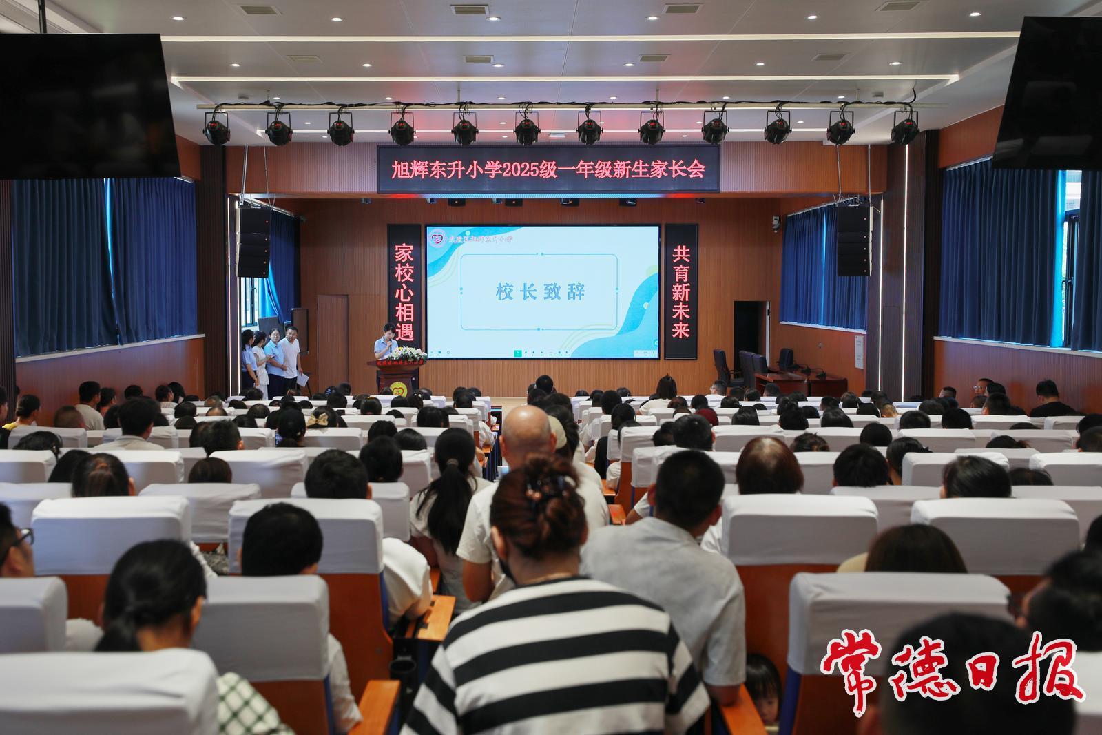 10時,新生家長會與“新生開學第一課”分別舉行。在學校多功能報告廳,學校負責人向家長介紹了學校辦學理念與發展規劃,并圍繞新學期學習要求、習慣培養等內容展開指導,為家長提供教育建議。隨后,心理老師帶來專題講座,幫助家長和孩子更好地適應新學期。“新生開學第一課”的現場同樣精彩。學校語文老師與跟班老師共同指導學生進行“開筆禮”,一撇一捺間,引導孩子們感受漢字之美、文化之韻。班主任則通過生動的案例,開展行為習慣教育,培植孩子們的感恩之心、明辨之智。