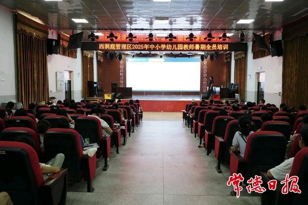 常德日報記者 楊榮國 通訊員 彭雅婷 文/圖 8月28日至29日,西洞庭管理區舉辦了2025年中小學、幼兒園教師暑期全員培訓活動。本次培訓以“蓄能新學期”為主題,來自全區300余名教師參加了培訓。