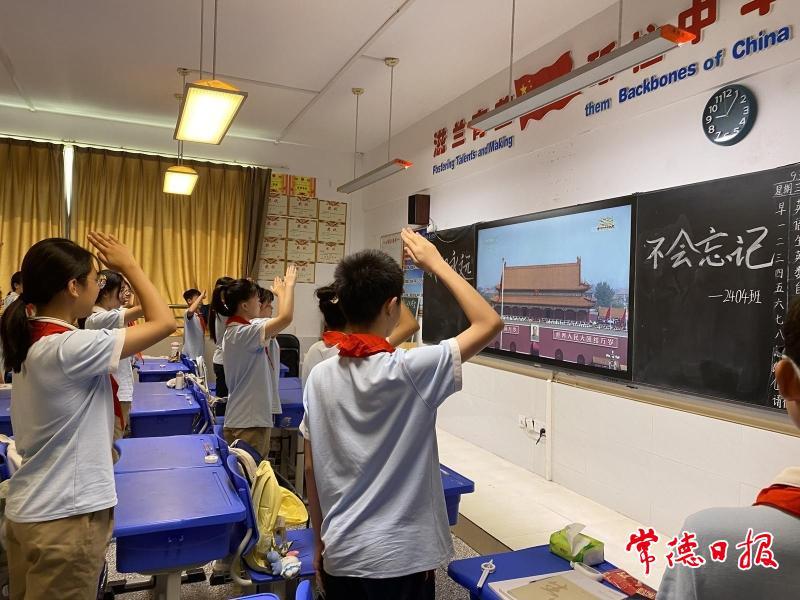 常德日?qǐng)?bào)記者 楊鑫 通訊員 陳奧鈴 文/圖 9月3日上午,常德嘉樹(shù)學(xué)校組織全體師生集中觀看紀(jì)念中國(guó)人民抗日戰(zhàn)爭(zhēng)暨世界反法西斯戰(zhàn)爭(zhēng)勝利80周年大會(huì)直播盛況。