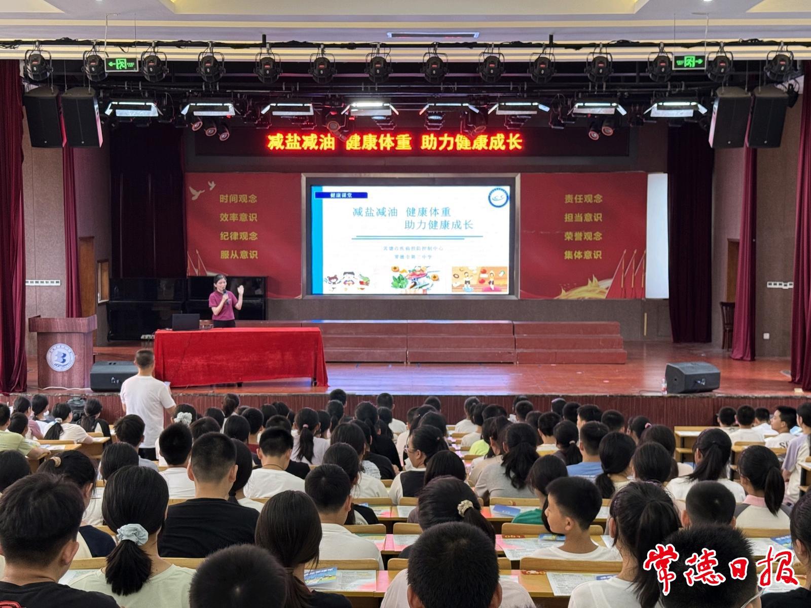 常德日報記者 李白 通訊員 朱亞靜 文/圖 秋季開學季,為更好地促進孩子們的健康,9月5日,常德市疾控中心、常德市第三中學以“減鹽減油 健康體重”為主題,為學校初一新生送上開學健康課。