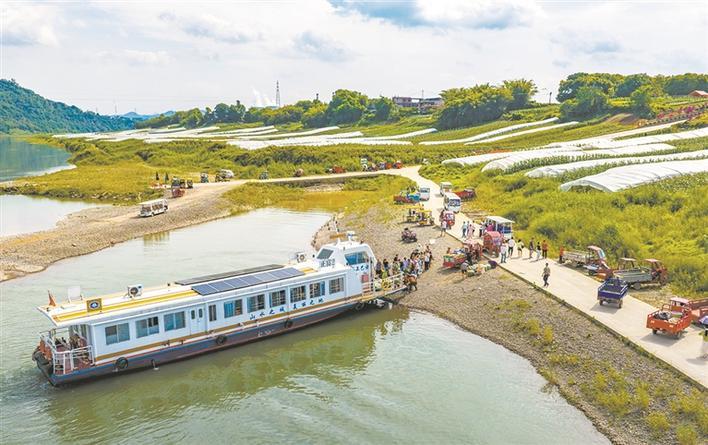 午后渡輪靠岸,市民王媛帶著孩子踏上島,難掩欣喜:“坐船、賞江、摘菜,仿佛一下子回到了童年,這種田園感太珍貴了。”