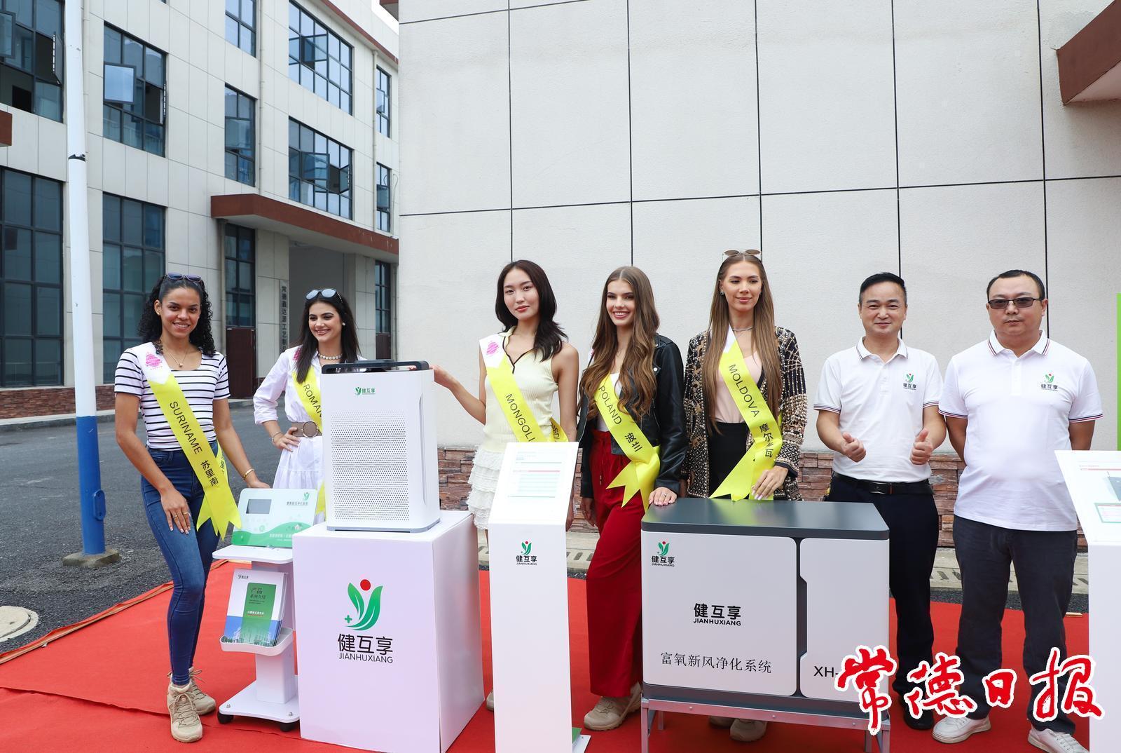 承載佳麗的車隊從常德柳園錦江酒店出發,大巴車懸掛的“德人牧香——2025 世界旅游小姐全球總決賽唯一指定奶品”橫幅,成為此行首個“西湖標識”。首站德人牧香市區政府店,8位佳麗在奶香中品嘗鮮乳品,齊聲喊出“常喝德人奶,健康美一天!”隨后抵達上優食品科技,她們參觀奶牛科普館、走進牛奶加工透明工廠,透過玻璃見證自動化流水線運轉,并在前坪合影定格“產業與美麗碰撞”的瞬間。