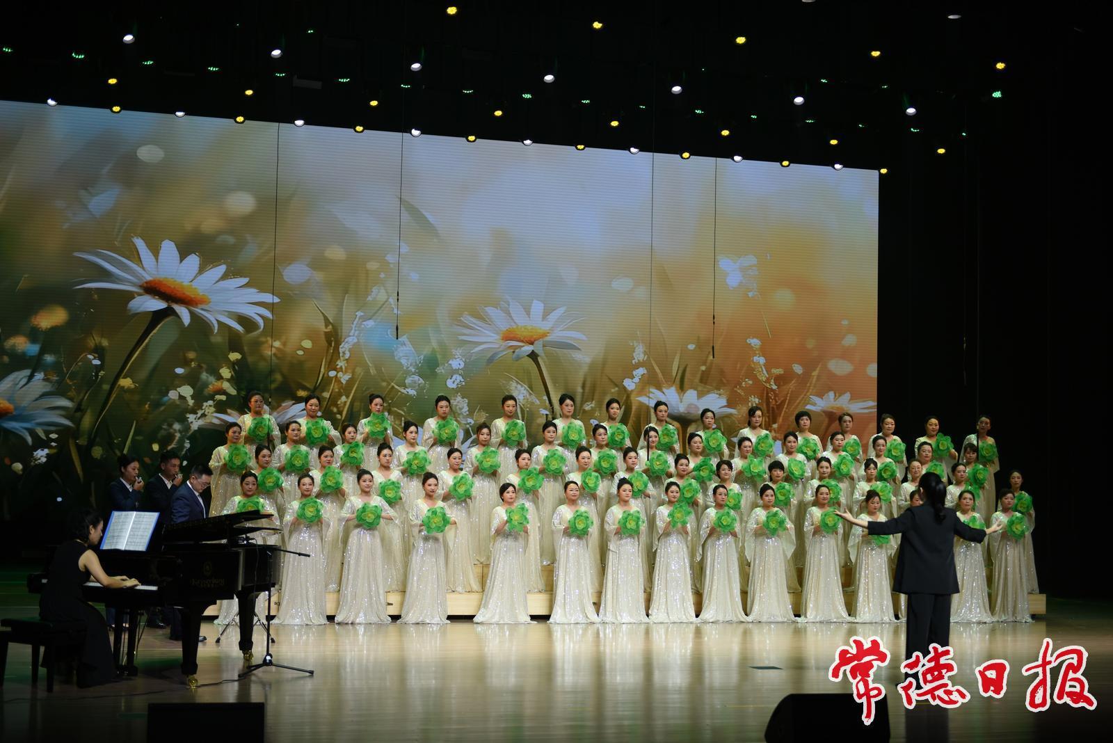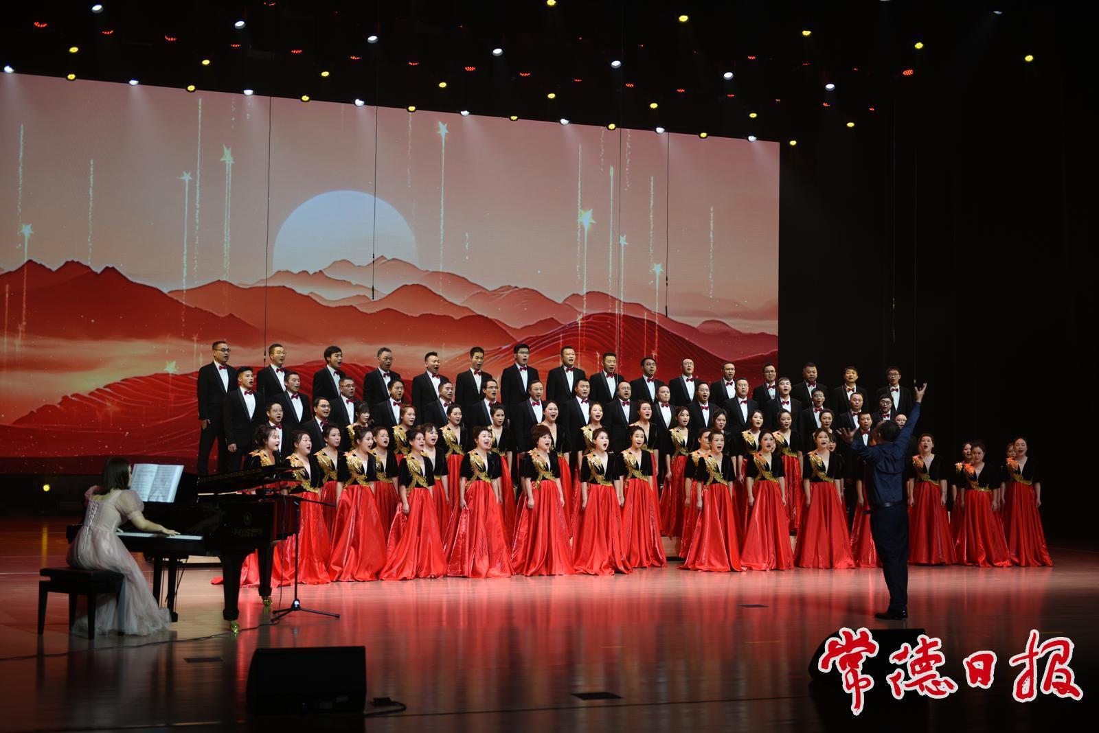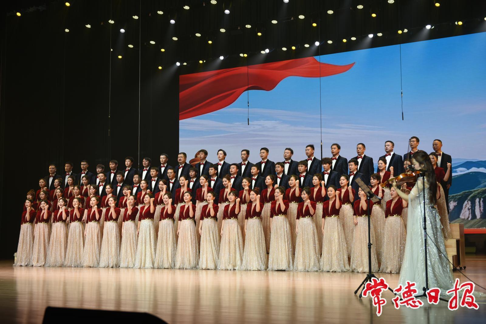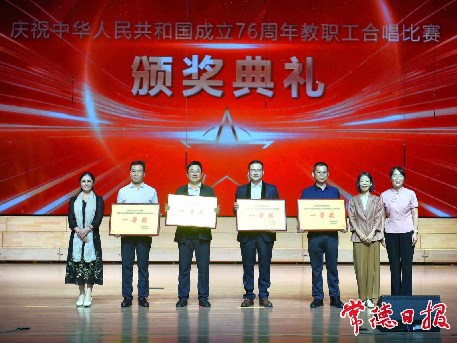 常德日報記者 韓冬 通訊員 伍偉華 實習生 栗開紀 文/圖 9月27日,常德市市直教育系統慶祝中華人民共和國成立76周年教職工合唱比賽在常德學院精彩館舉行。
