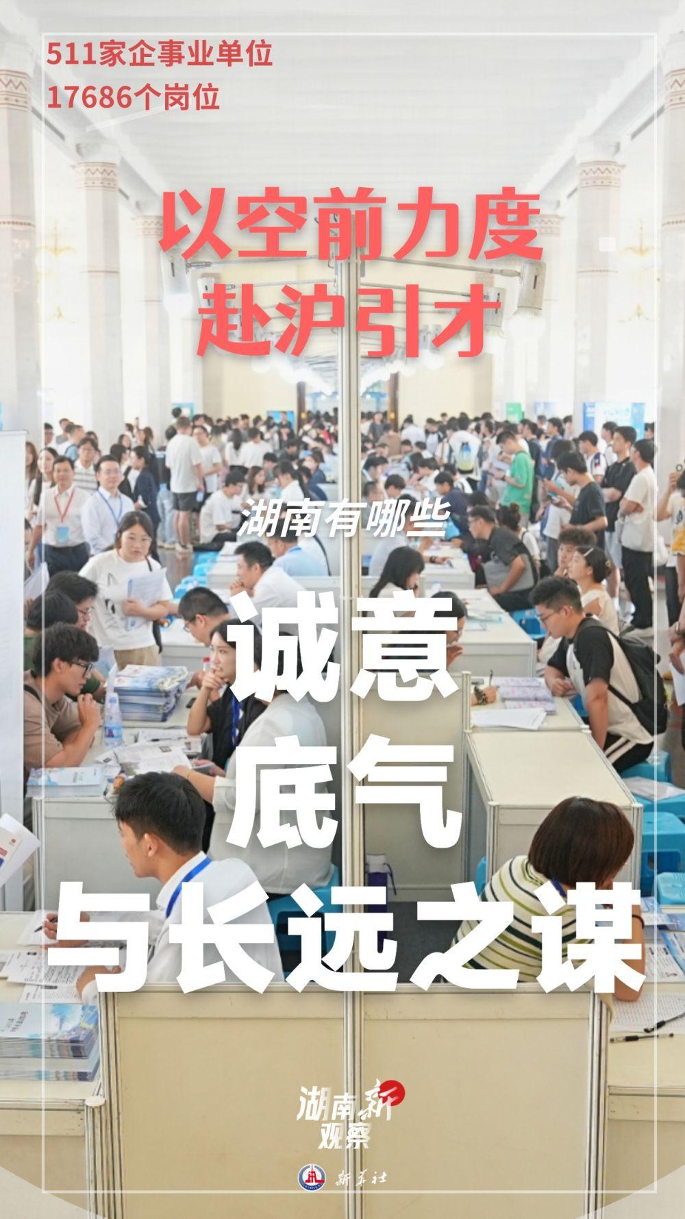 9月27日的上海展覽中心,兩層展廳被藍色的“智匯瀟湘”主題氛圍包裹,從一樓的城市形象展到二樓的職業指導服務,這場被譽為規??涨暗暮险衅甘?,亮點紛呈中盡顯主動與誠意。