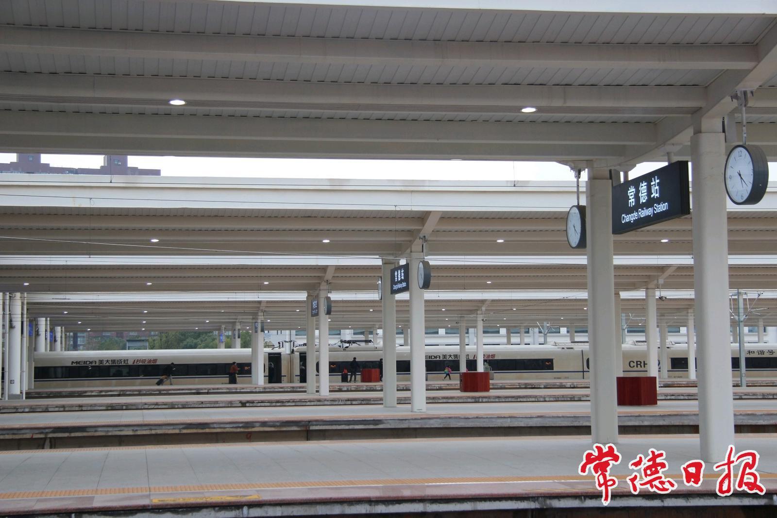 高鐵列車有26趟,分別為:C8059次張家界西—長沙、C8100次長沙—張家界西、C8054次長沙—張家界西、C8056次長沙—張家界西、C8033次張家界西—長沙、C8058次長沙—張家界西、C8035次張家界西—長沙、G4313次重慶東—常德、C8060次長沙—張家界西、C8099次張家界西—長沙、G4407次瀘州—常德、G4314次常德—重慶東、G4408次常德—瀘州、G4597次重慶北—長沙、S8168次長沙—鳳凰古城、S8167次鳳凰古城—長沙、S8171次懷化南—長沙、S8174次長沙—龍山北、S8172次長沙—懷化南、G4598次長沙—重慶北、S8173次龍山北—長沙、C8055次張家界西—長沙、C8053次常德—長沙、C8057次張家界西—長沙、C8034次長沙—張家界西、C8036次長沙—張家界西。