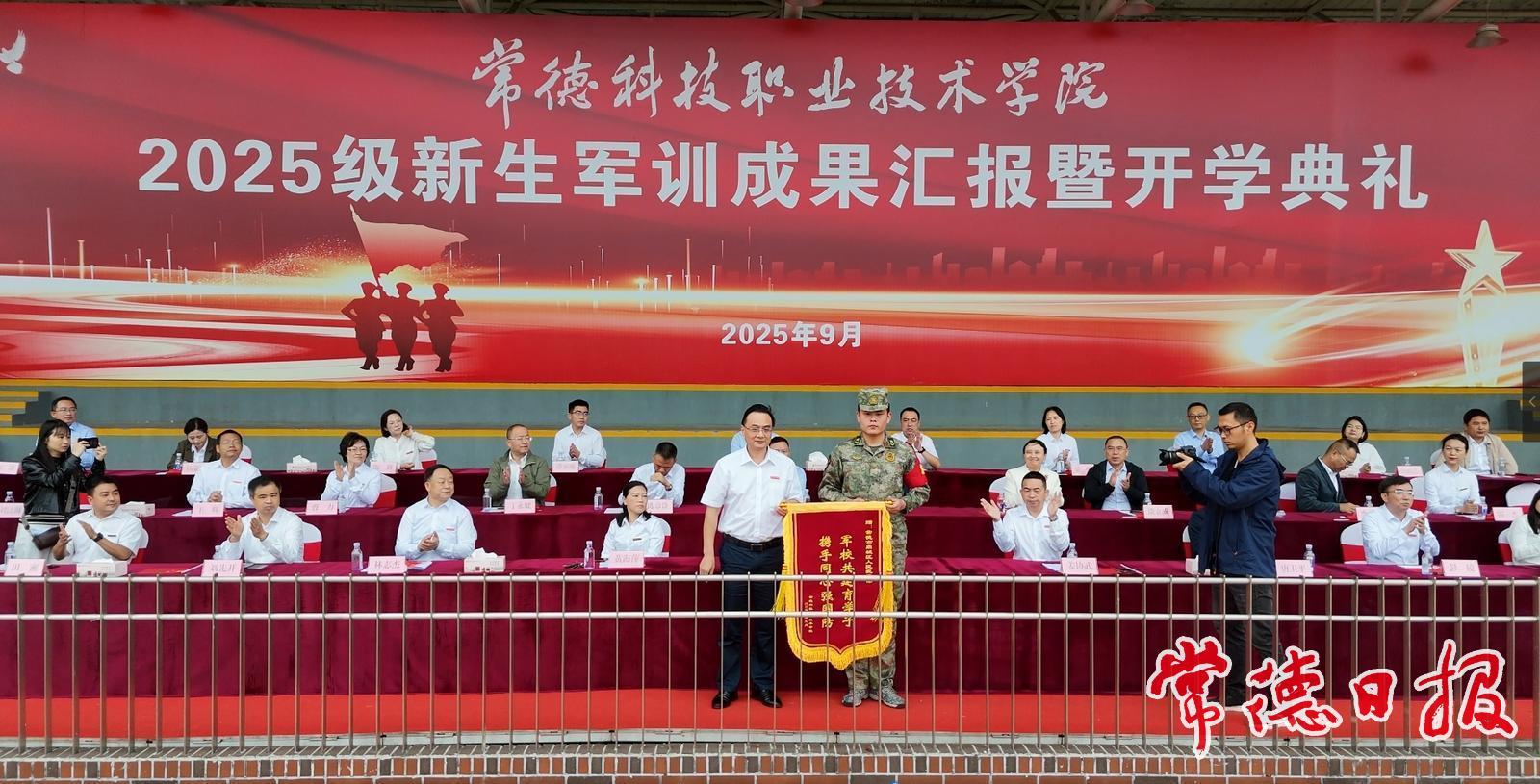 常德日報記者 李龍 通訊員 賀敏 文/圖 9月29日,常德科技職業(yè)技術(shù)學(xué)院在北區(qū)運動場舉行2025級新生開學(xué)典禮暨軍訓(xùn)總結(jié)表彰大會。