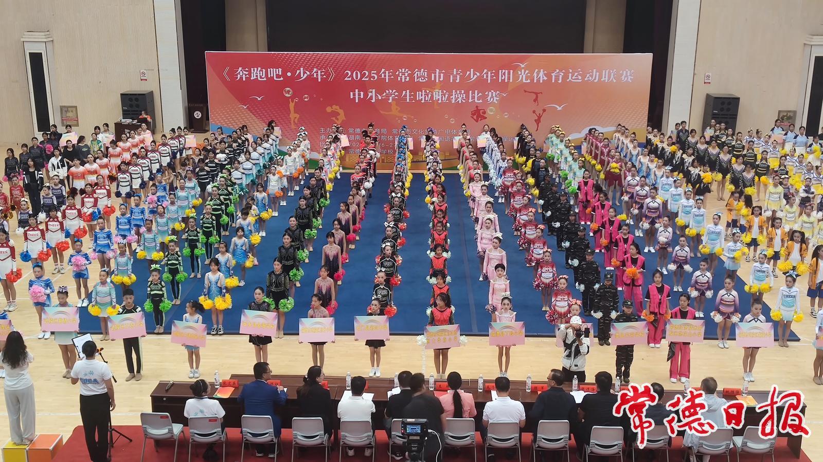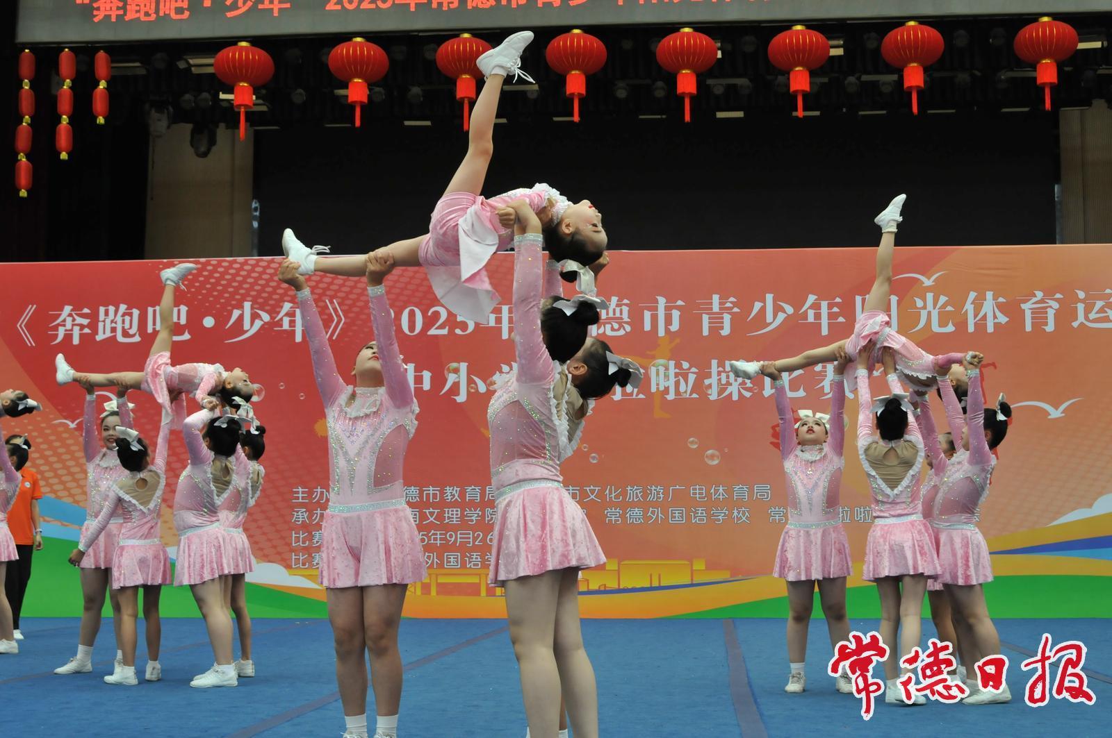 常德日報記者 張瑜 通訊員 張謀海 李耕 文/圖 9月26日至27日,來自全市9所高中、15所初中、36所小學共計60支代表隊的1256名教練員、運動員齊聚常德外國語學校,參加“奔跑吧·少年”2025年常德市青少年陽光體育運動聯賽中小學生啦啦操比賽。