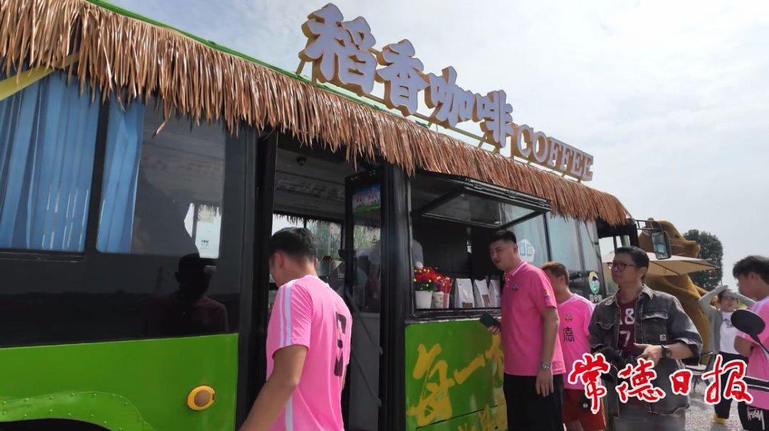 金色的稻田里,一輛停靠的咖啡巴士成為這個假期的“網紅”。游客們手捧現磨咖啡與田園特調飲品,在稻香與咖啡香的交融中感受慢生活的愜意。