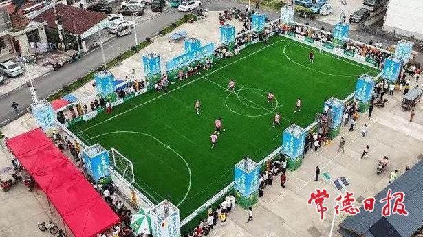 10月1日下午,“湘超”常德隊部分隊員打卡港中坪,為球迷朋友呈現了一場表演賽,球場秒變追星現場。同時,“港中坪杯”五人制足球決賽火熱舉行。足球運動的魅力與鄉村的寧靜和諧交融,觀眾們的吶喊助威聲此起彼伏。