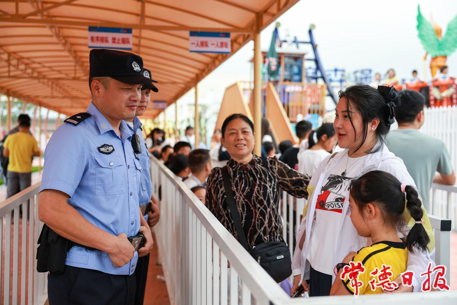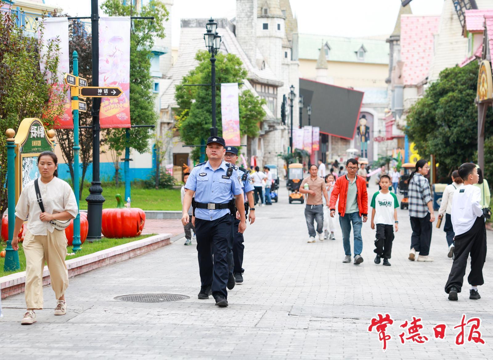 國慶中秋假期的柳葉湖旅游度假區,人流如織,歡聲笑語。在卡樂星球、摩森堡c.park微動力游樂場等景區,游客們臉上洋溢著節日的喜悅。在這歡樂的海洋中,常德市公安局柳葉湖分局的民輔警們堅守在崗,護航文旅經濟高質量發展。