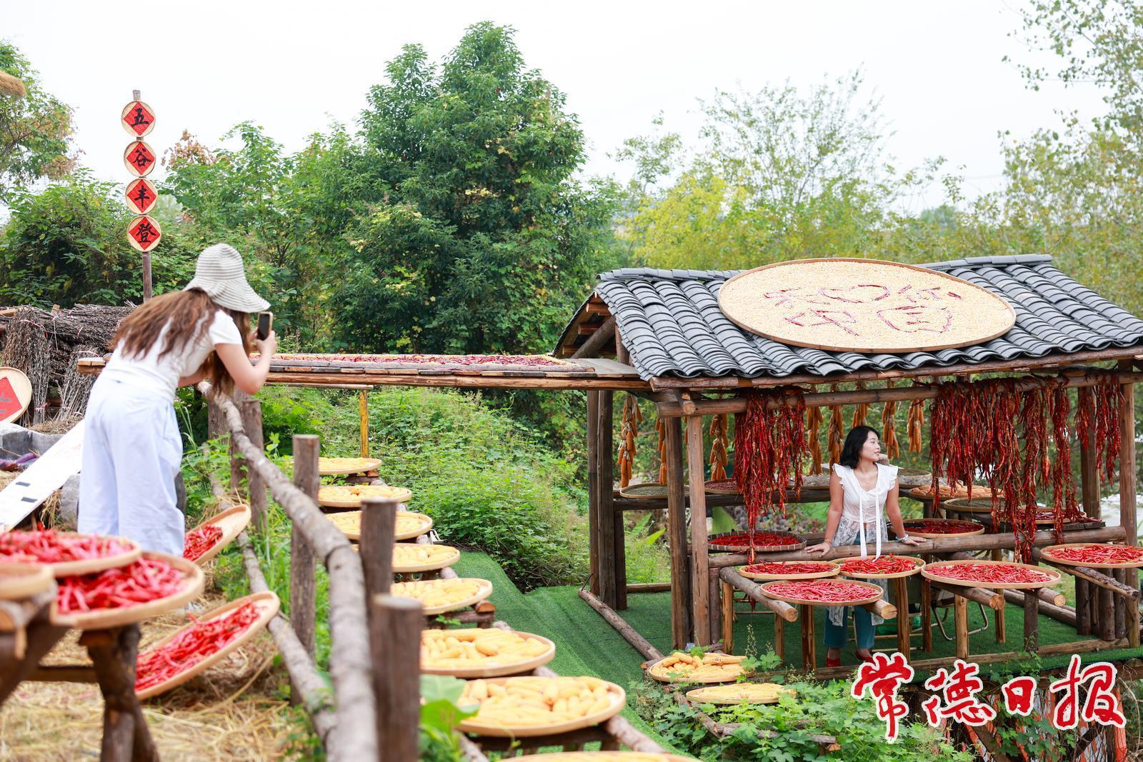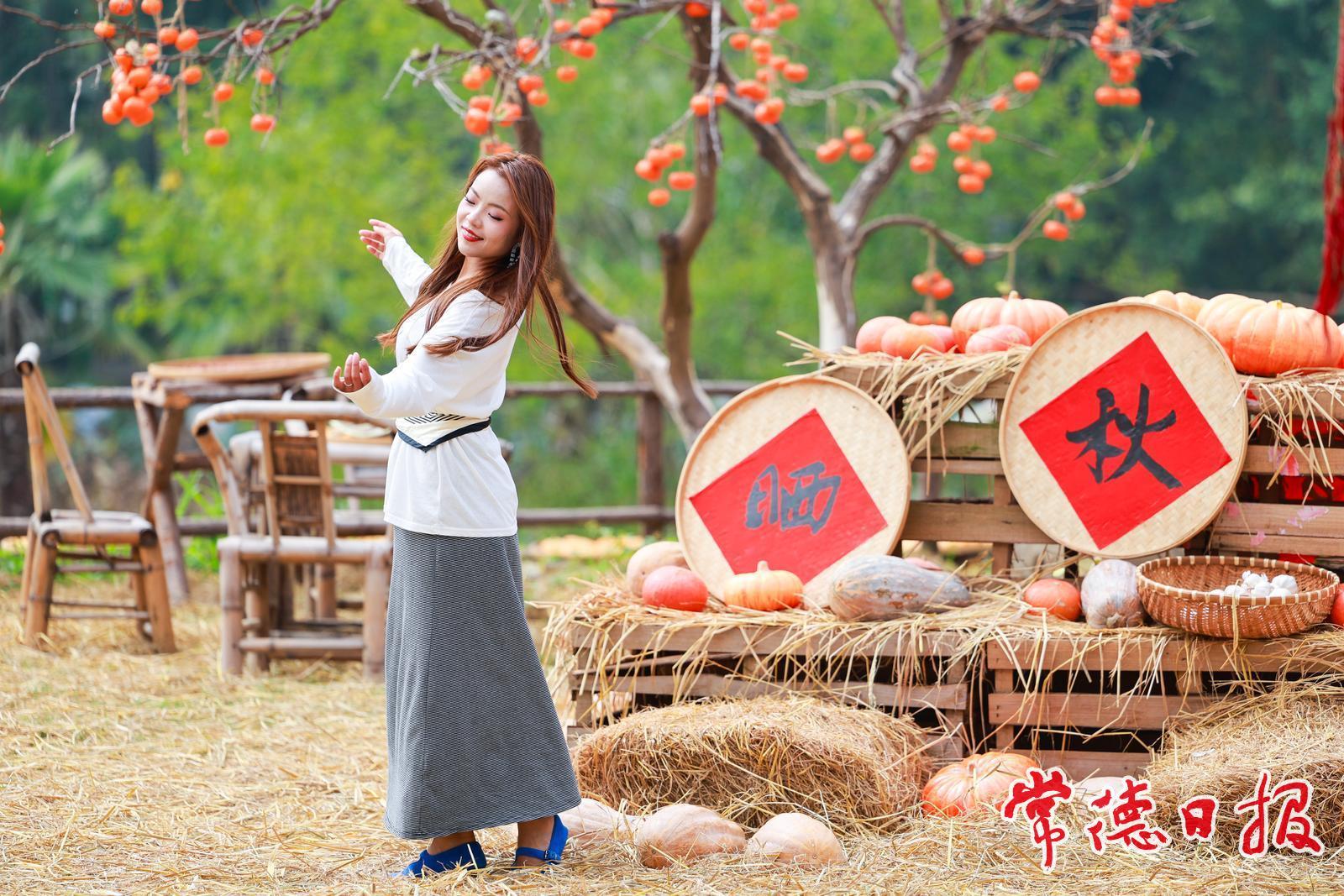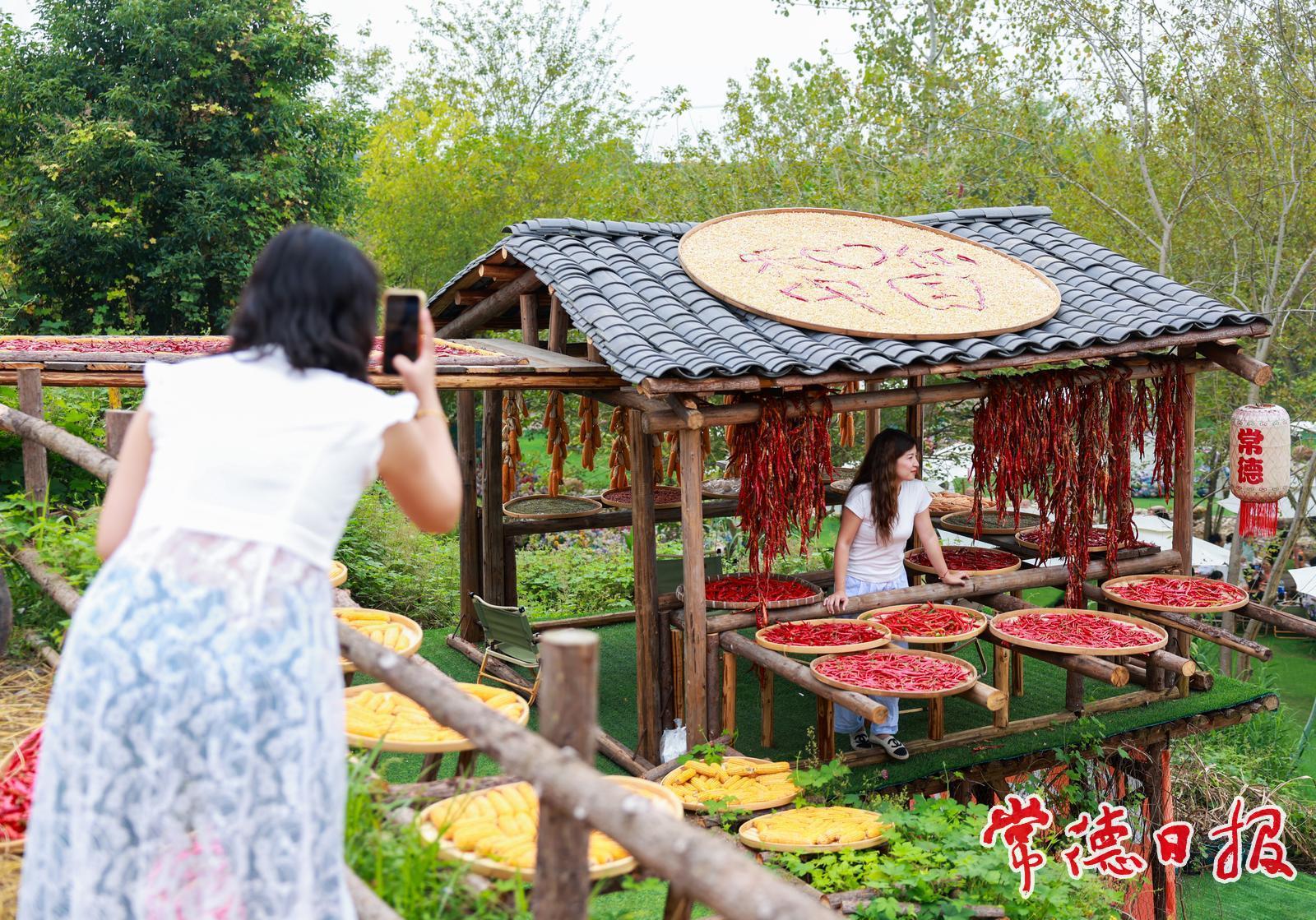 10月5日,常德市武陵區的丹野花田農場里五谷豐登、瓜果飄香,眾多游客前來打卡拍照,秋日氛圍濃厚,描繪出一幅生動的曬秋圖景。