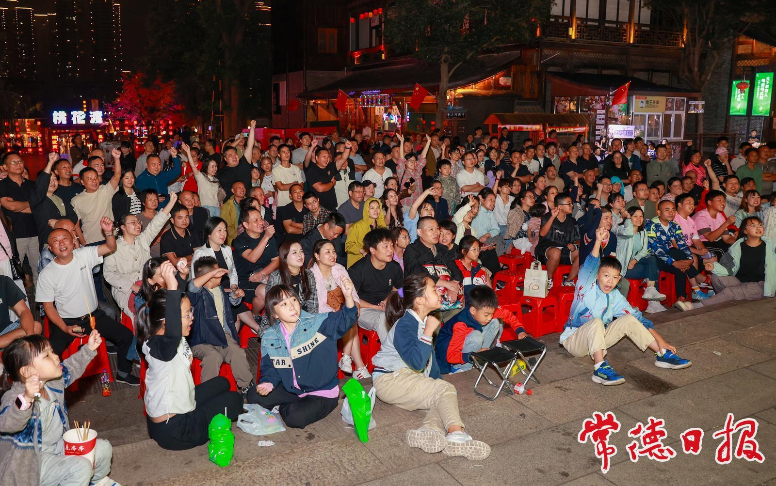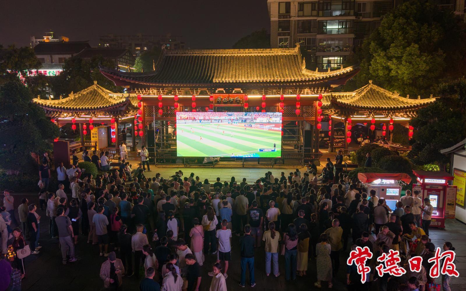 常德日?qǐng)?bào)記者 代維 李嘉毅(實(shí)習(xí))文/圖 “常德隊(duì),加油!常德,必勝!”10月11日晚,熟悉的助威聲再次響徹常德河街。常德河街狀元門及西街漢諾威廣場(chǎng)的戶外大屏前,匯聚了從四面八方趕來的市民與球迷,為家鄉(xiāng)球隊(duì)隔空助威。