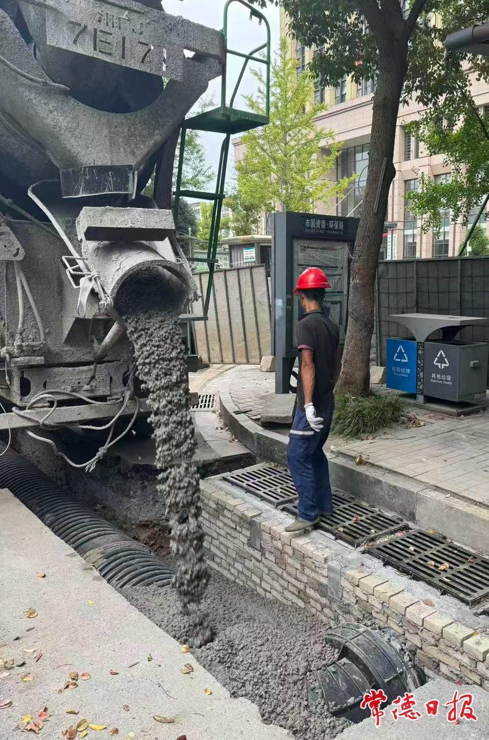 此次改造集中在常德大道、柳葉大道、陽山大道、朗州路、紫緣路等20條交通主次干道的重要路口及低洼區(qū)積水隱患點。這些區(qū)域此前因雨水口過小,且易被落葉雜物堵塞,強降雨時容易出現(xiàn)路面積水,影響交通通行與市民安全。為精準破解難題,市海綿中心采用經(jīng)試點驗證的高效排水技術方案,新建成的雨水邊溝由五組鑄鐵雨水口組合而成,并將原有DN200-300的雨水連接支管升級為DN600,同時在雨水井內(nèi)增設沉泥池,從源頭減少樹葉和垃圾淤堵管網(wǎng)的問題。