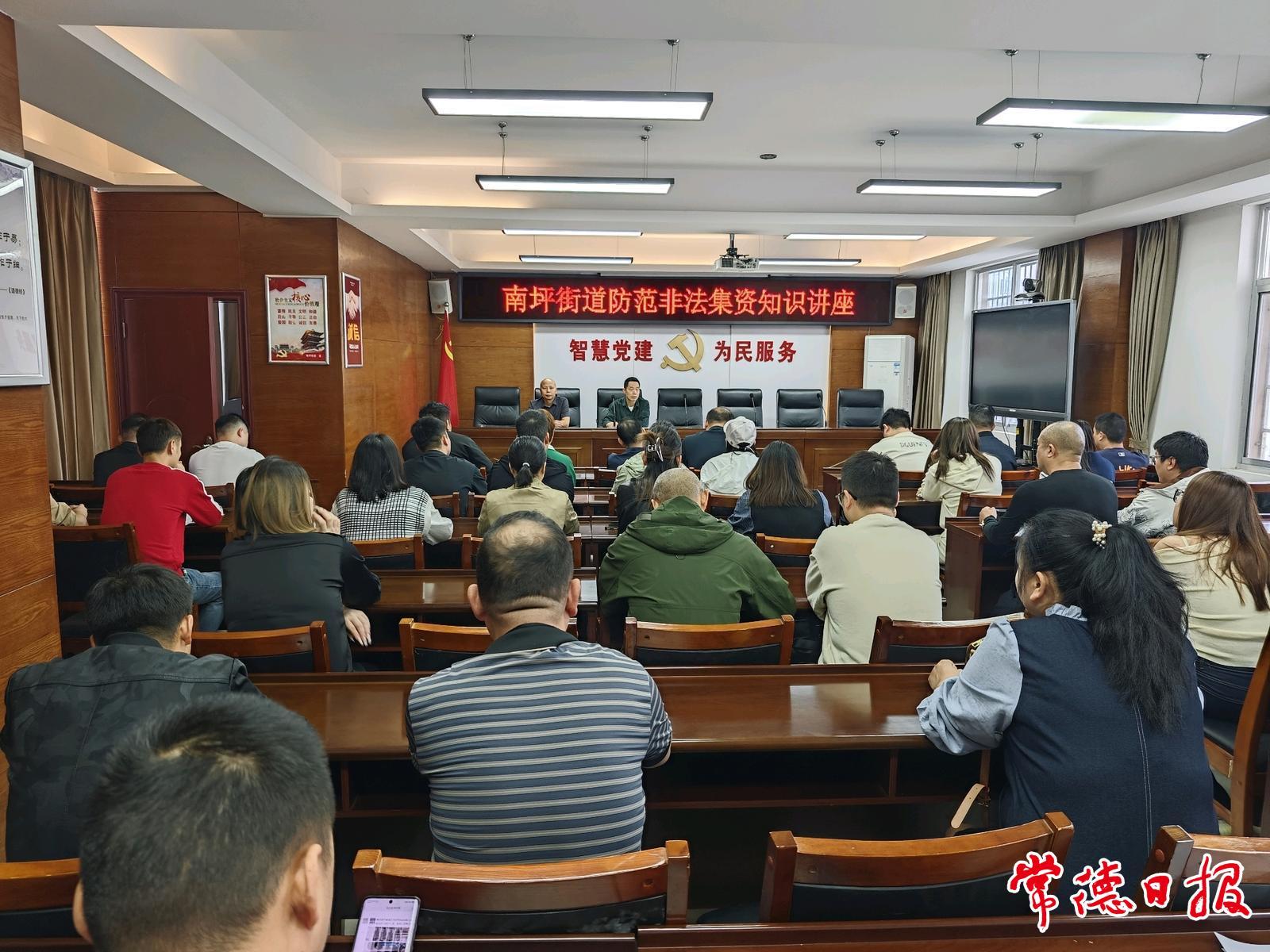 常德日?qǐng)?bào)記者 彭進(jìn)軍 通訊員 汪勇見(jiàn) 文/圖 為進(jìn)一步增強(qiáng)居民金融風(fēng)險(xiǎn)防范意識(shí),守護(hù)好群眾的“錢袋子”,近日,南坪街道聯(lián)合駐街道司法所、派出所共同開(kāi)展以“守住錢袋子·護(hù)好幸福家”為主題的防范非法金融活動(dòng)專題知識(shí)講座?;顒?dòng)吸引社區(qū)代表、企業(yè)代表及網(wǎng)格員等70余人參加,現(xiàn)場(chǎng)發(fā)放宣傳資料百余份。