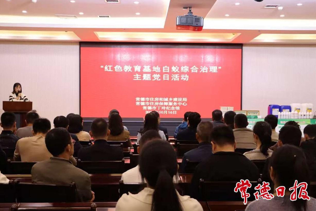 常德日報記者 曾妮 通訊員 曾山珊 文/圖 10月16日,市住保中心聯合市住建局機關支部及部分站辦黨員,在丁玲紀念館組織開展“紅色教育基地白蟻綜合治理”主題黨日活動,推動黨性教育與業務實踐深度融合,切實保護紅色文化資源。