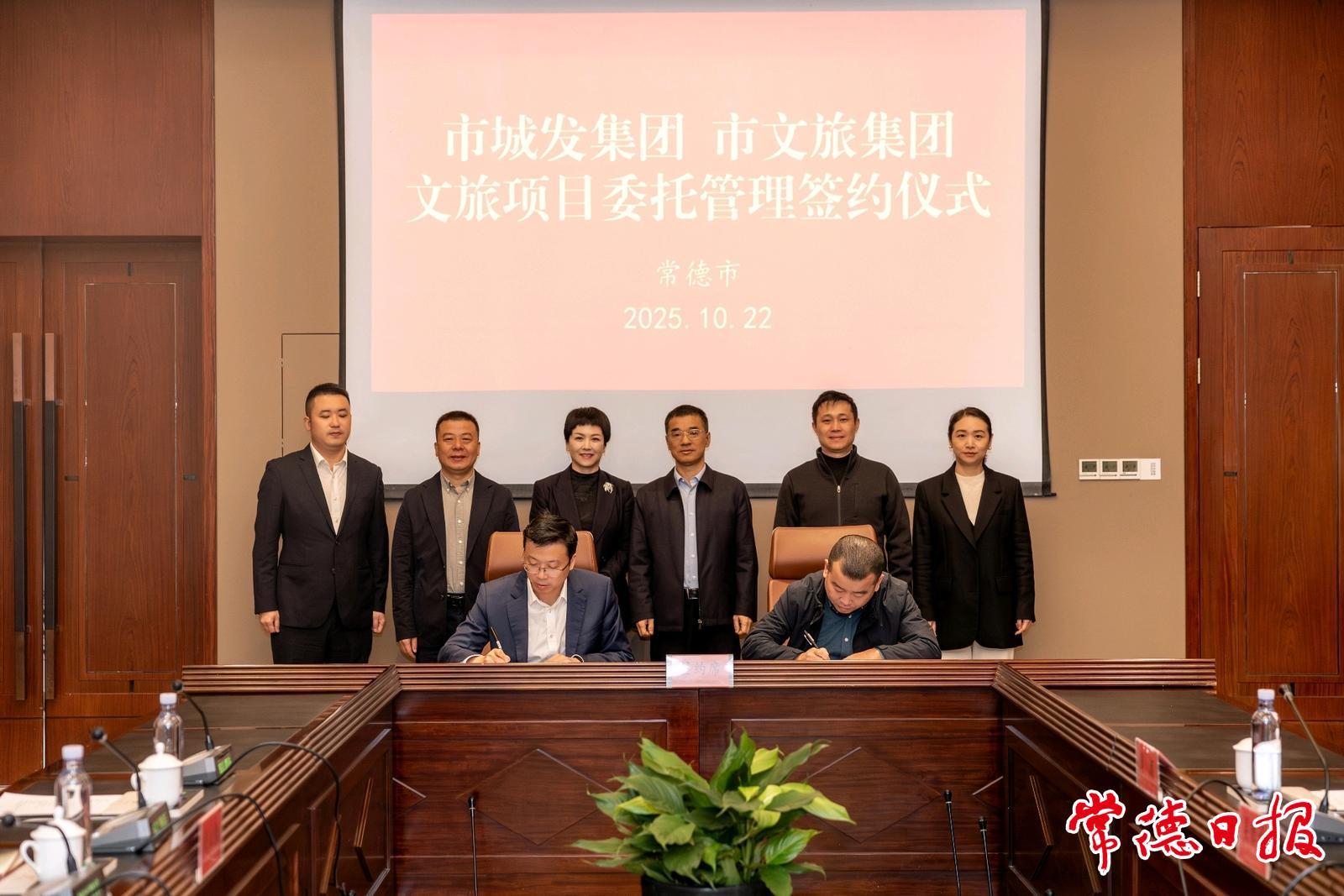 常德日報記者 肖志芳 代維 通訊員 張雄 文/圖 為有效整合常德市文化旅游資源,提升文旅項目策劃、品牌建設與景區運營水平,10月22日,市城發集團與市文旅集團舉行文旅項目委托管理簽約儀式。市委常委、市委宣傳部部長黎軍鋒出席儀式并致辭。