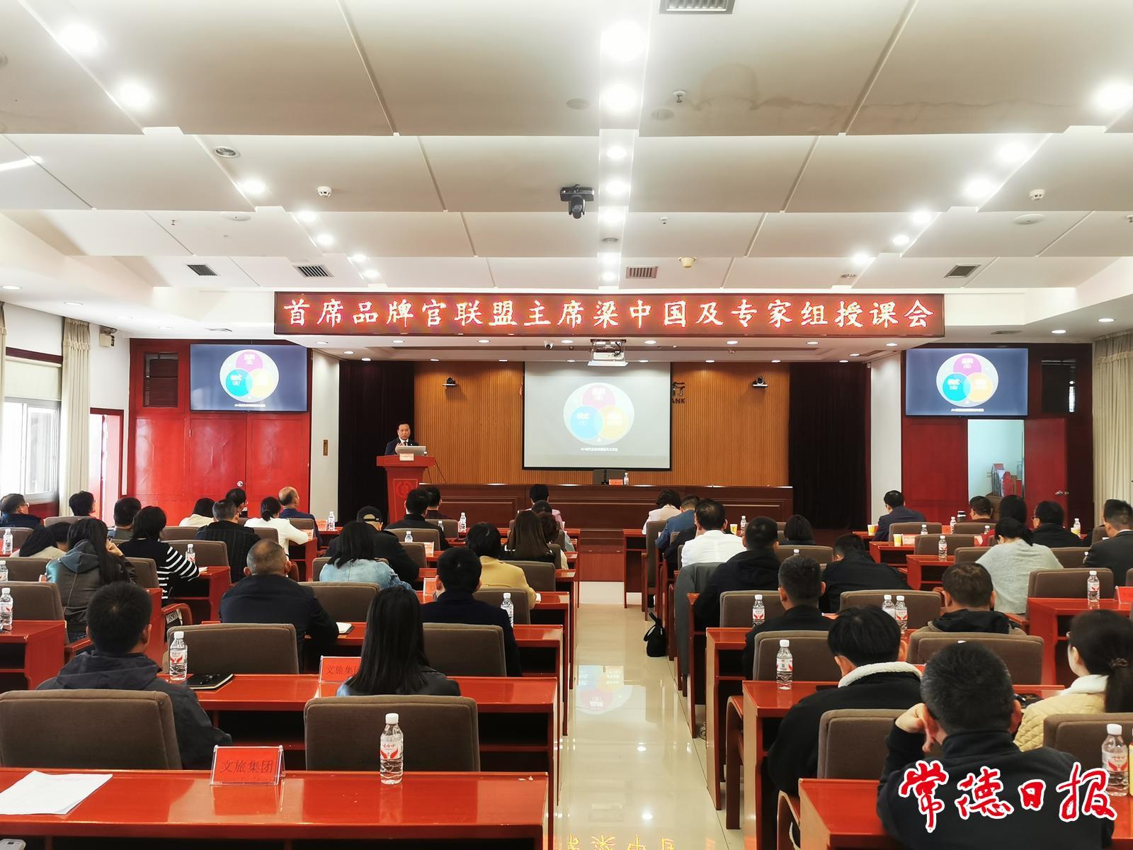 常德日報記者 李張念 文/圖 10月23日,首席品牌官聯盟主席梁中國及專家組來常授課并交流座談。副市長陳華出席活動。