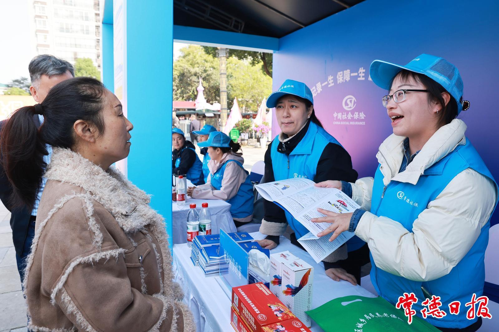活動主會場——常德技師學院內,教職工、學生和周邊城鄉居民、新業態從業人員踴躍參加。政策咨詢解答區,座無虛席,市民圍坐社保規劃師身旁,享受“一對一”精準解答。智慧服務展示區,智能機器人流暢應答,業務導辦一鍵完成。社銀合作展示區,現場即可辦理社保卡開戶、申領、換卡等業務,便捷服務引得群眾連連稱贊。趣味互動區,笑聲不斷,有獎問答讓社保知識“活”了起來,一名學生舉著獎品笑道:“原來社保可以這么有趣!”