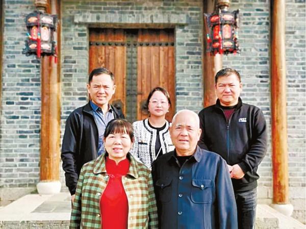 張陸(后排左一)與父母、弟弟、弟媳合影。資料照片