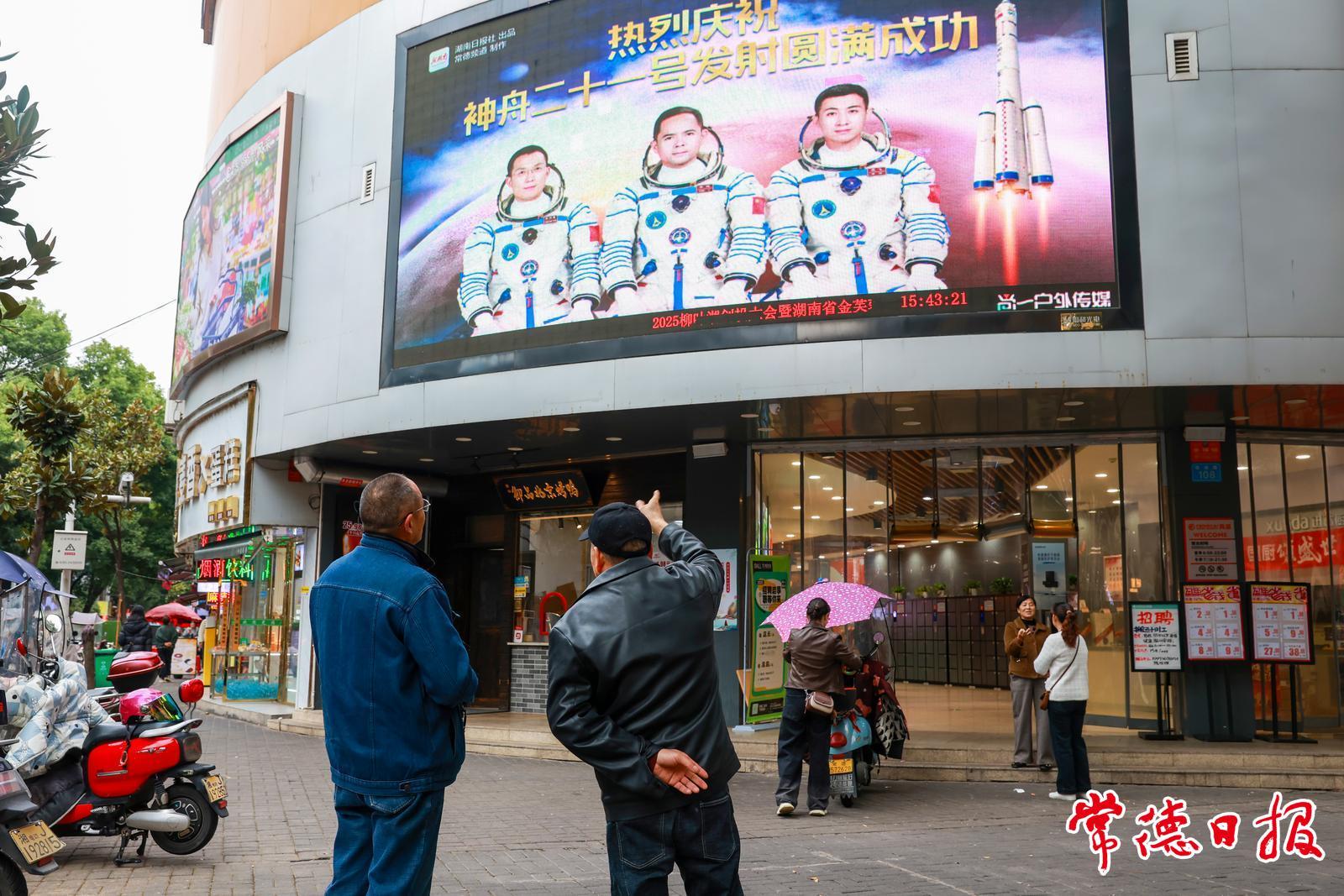 10月31日,常德漢壽籍航天員張陸作為神舟二十一號航天員乘組指令長,再度出征太空。連日來,常德各商圈、學校、市直單位的大屏都定時播放著“熱烈慶祝神舟二十一號發射圓滿成功”的海報,家鄉人民都為張陸的“二飛”太空而激動自豪。