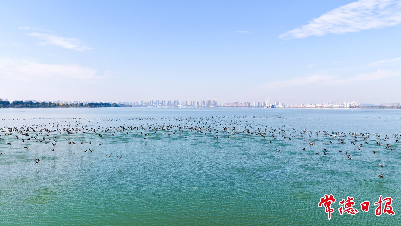 近年來,柳葉湖水質常年保持在Ⅲ類及以上標準,水域生態環境持續改善,前來歇息候鳥的數量和種類逐年遞增,呈現出一幅人鳥和諧共生的自然生態文明畫卷。