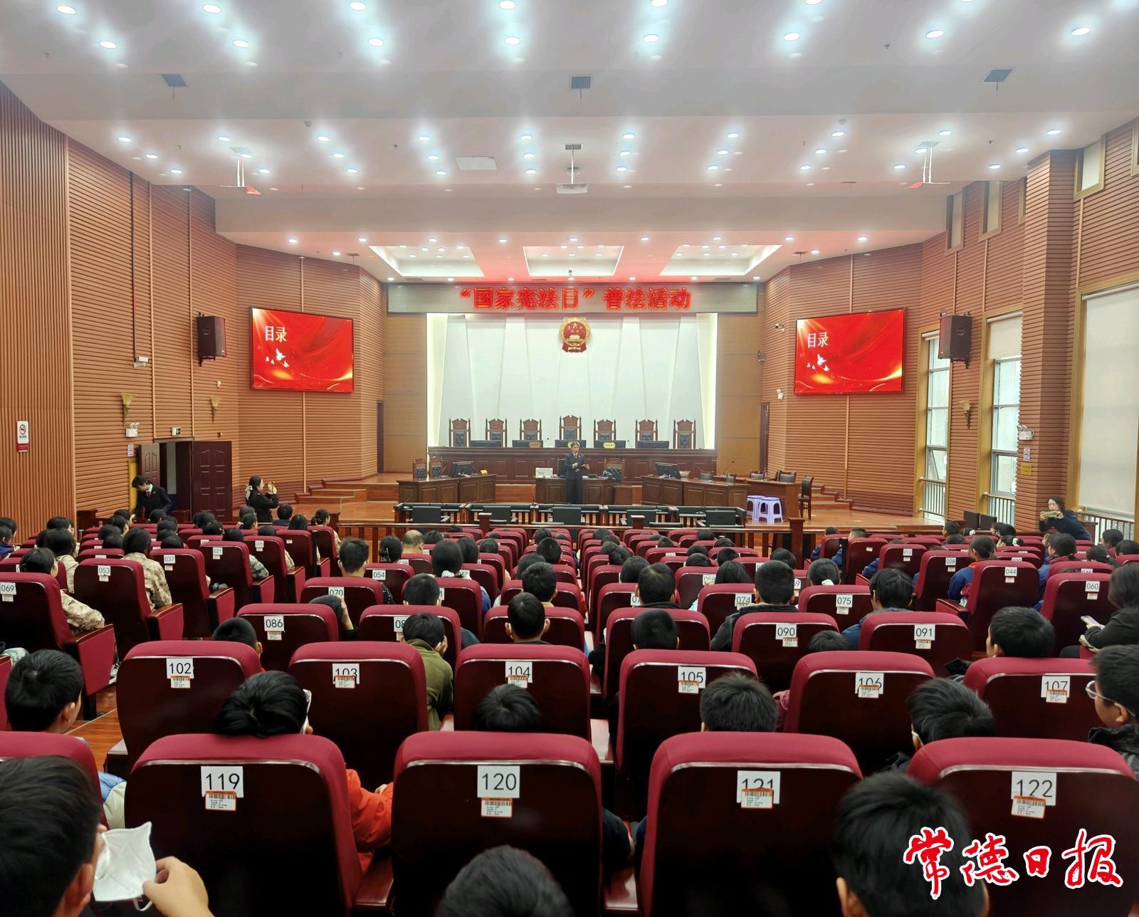 常德日報記者 江一舟 姚璇 文/圖 12月4日是國家憲法日,常德市二中、常德市十七中及武陵區(qū)旭輝東升小學(xué)的170余名師生走進(jìn)武陵區(qū)人民法院第一審判庭,旁聽刑事案件庭審、參與普法互動,上了堂別開生面的“沉浸式”憲法宣傳課。